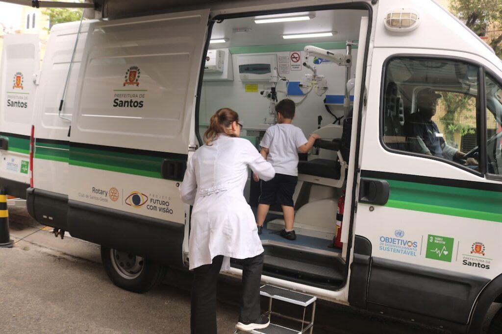 A médica oftalmologista Letícia Goulart explicou como o processo é feito. “Tem criança que chega com medo, e tem outras que vêm tranquilamente fazer o exame. A gente realiza a autorrefração, faz a dilatação, depois a refração na van, o exame com a lâmpada de fenda, que é a biomicroscopia, além da fundoscopia e da avaliação da motilidade ocular, para verificar se há estrabismo.”